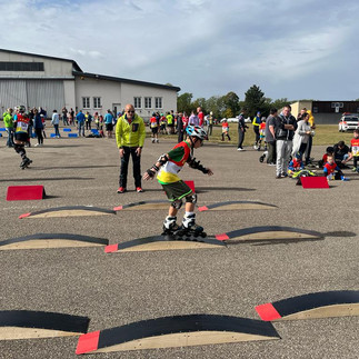 Nach den beiden SSV-Cup Wertungsläufen in Römerstein und Pfullingen stand am 08.10.2023 der letzte Wertungslauf der Sommersaison auf Rollski bzw. Inliner auf dem Segelfluggelände Hornberg in der Nähe von Schwäbisch Gmünd auf dem Programm. Ausrichter des Rennens war der TV Weiler in den Bergen. Bei wunderschön sonnigem und sehr warmem Spätsommerwetter galt es für die älteren Athleten ab der Altersklasse U14 bis zu den Erwachsenen traditionell ihre jeweiligen Distanzen von 4,4 km bis 10,4 km in der freien Technik auf dem Flugfeld zu absolvieren. Für die jüngeren Sportler war das Rennen in Weiler dagegen ein Novum. Es stand nicht, wie gewohnt, die Distanz im Vordergrund, sondern Schnelligkeit, Geschicklichkeit und Technik waren bei diesem 350m langen Hindernis-Parcours gefragt. Immer vier Starter traten im direkten Duell auf Inlinern gegeneinander an und die beiden Ersten eines Laufes qualifizierten sich dann für das A-Finale. Direkt nach dem Start musste ein Feld von Autoreifen überquert werden. Danach folgten ein Tunnel, ein Kreisel sowie ein Irrgarten, aus dem es direkt auf ein zu durchlaufendes Wiesenstück ging. Zurück auf dem Rollfeld galt es einen 60 cm hohen Balken zu übersteigen, ein Rückwärtstor zu durchfahren und den anschließenden Slalom zu bewältigen. Auf der Zielgeraden folgten zum Abschluss noch eine Tretorgel sowie eine Schanze. Den Schülerinnen und Schülern bis zur Altersklasse U13 wurde also alles abverlangt und die anwesenden Zuschauer sahen spannende und hochinteressante Wettkämpfe. Das intensive Sommer-Training und der unermüdliche Fleiß der Trainer, Sportlerinnen und Sportler zahlte sich aber erneut aus. Das Skiteam des SV Mitteltal-Obertal verbuchte mit fünf Siegen und acht Podestplätzen wieder hervorragende Ergebnisse.