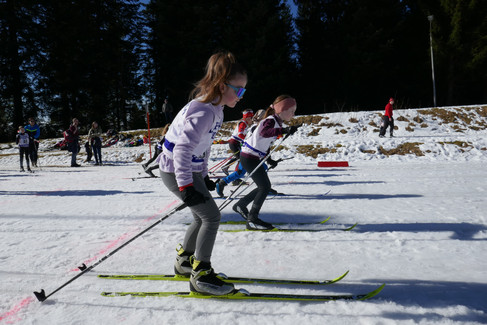 Bereits 1,5 km nahmen die Schülerinnen U8 und U9 in Angriff. Auch für sie war der Massenstart ein Novum. Mit kräftigem Doppelstockeinsatz brachten sich Sofia Lehmann und Amina Fielitz in ihrem Lauf sowie Letizia Herbert und Lotte Haist im nächsten Lauf in eine gute Ausgangsposition für den ersten Anstieg. Alle vier liefen ein gutes Rennen und belegten die Plätze vier und sieben sowie fünf und sieben.